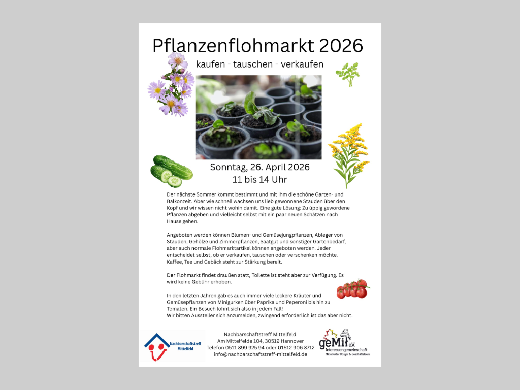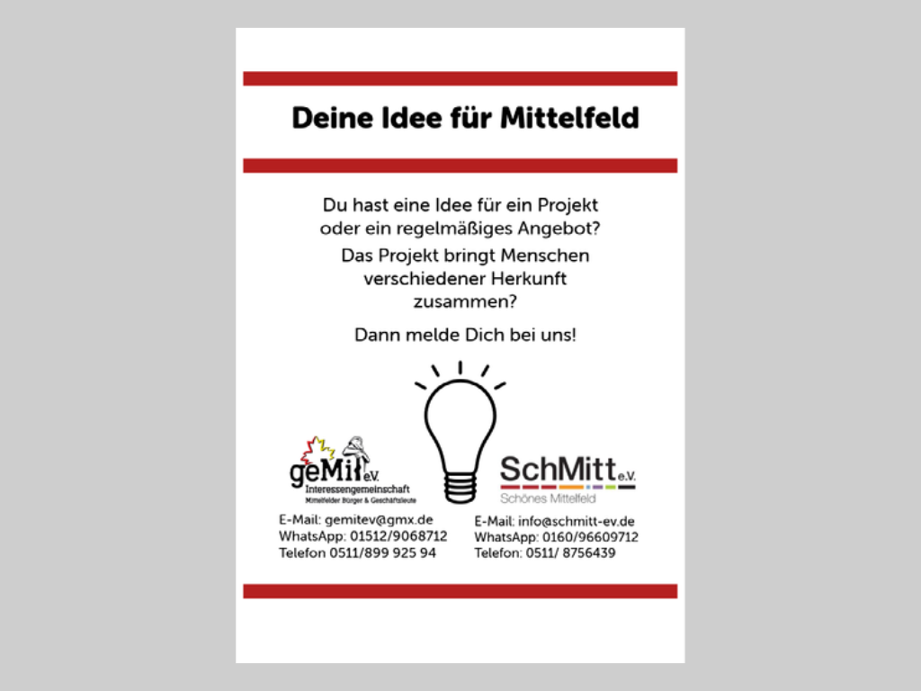 Auf dieser Seite finden Sie vielfältige Informationen, Angebote und Aktuelles aus Hannover-Mittelfeld und Umgebung. Außerdem gibt es Wissenswertes zur Geschichte und Umgebung von Hannover-Mittelfeld sowie den im Stadtteil tätigen Institutionen und Vereinen zu lesen.