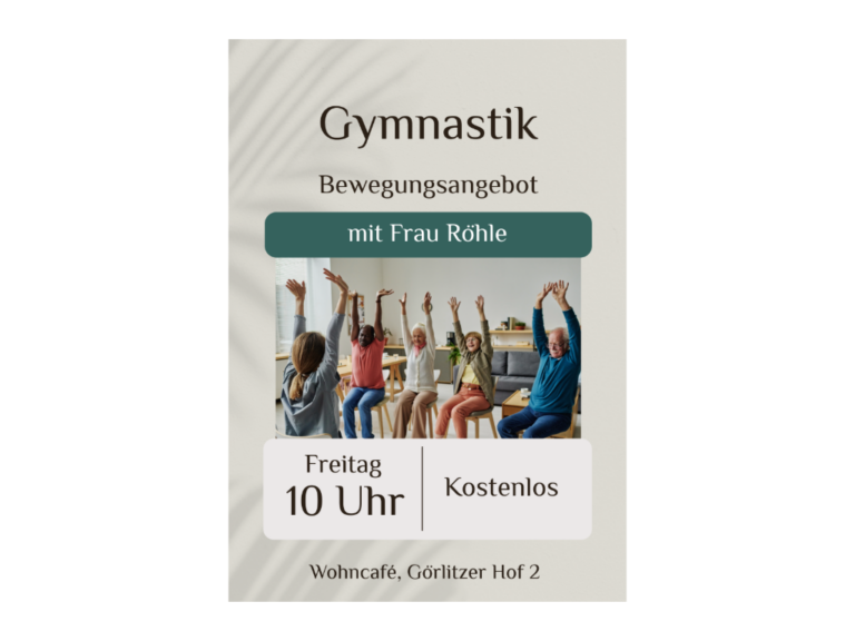 Frau Röhle bietet Freitags ein Bewegungsangebot für Senioren. Ein ruhiges und sanftes Training fördert die Beweglichkeit von Geist und Körper. , ...Gut zu wissen – offene Fragestunde15:00 - 17:00